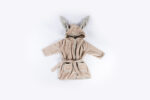 Dječji ogrtač predstavlja brzo i jednostavno rješenje za sušenje mališana nakon kupanja. Ogrtač je izrađen iz bambus mikroflisa gramature 270g/m2, ima dugi rukav, remen, kapuljaču i džepove na prednjoj strani. Kapuljača i džepovi s vanjske strane su od popelina ili jerseya, u motivima kao na slici. Ogrtač je izuzetno mekan, lagan i ima veliku sposobnost upijanja vlage te predstavlja funkcionalno rješenje za sušenje djece nakon kupanja. Može se koristiti nakon kupanja kod kuće ili prilikom posjete bazenima ili na plaži.