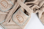 Ono što ovaj ogrtač čini posebnim je mogućnost personalizacije. Možete odabrati željeni tekst koji će biti štikan (izvezen) na ogrtač. Tekst može biti djetetovo ime, nadimak, inicijali ili bilo koji drugi poseban natpis koji želite dodati. Ovo je sjajan način da stvorite jedinstven i poseban tekstilni dodatak za vašu bebu. Također, imate mogućnost odabira boje konca za štikanje teksta. Štik dolazi sa stražnje strane ogrtača.