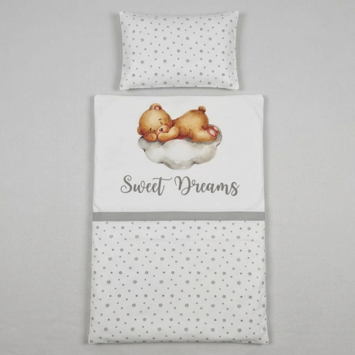 Set posteljine 60x120cm - 2-dijelni - Uspavani medo - sivi