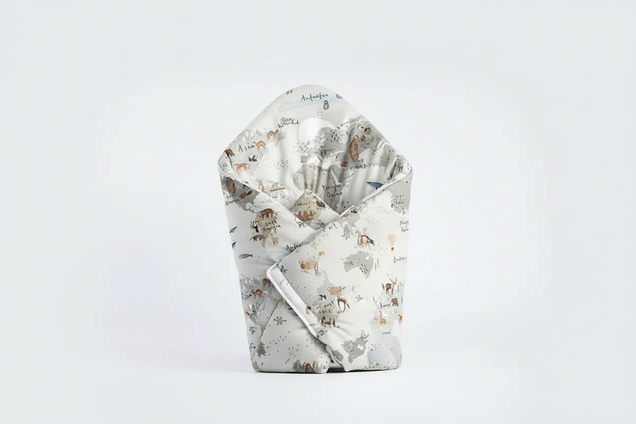 Izrađena od kvalitetnog pamučnog platna, dekica pruža mekoću i prozračnost. Pamučno platno je prirodan materijal koji je nježan prema bebinoj osjetljivoj koži. Ova dekica može poslužiti kao mekani jastuk u koji se bebica umota ili kao umirujuća podloga za igru. Čičak trakice na vrhovima dekice omogućuju pričvršćivanje, kako se jastuk dekica nebi otvarala jednom kad bebicu umotate u nju. Također se može koristiti kao lagani pokrivač tijekom drijemanja ili hladnijih trenutaka. Lako se pere i održava, čime se olakšava održavanje higijene.
