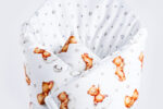 Jastuk-dekica za bebu izrađena od pamučnog platna, s punilom 100% poliester, pruža nježnost, toplinu i udobnost za vašu malu ljubav. Ova multifunkcionalna dekica može poslužiti kao jastuk u koji se beba umota, kao umirujuća podloga ili lagani pokrivač, pružajući bebi siguran i ugodan osjećaj tijekom spavanja ili igre. Rastvorena dekica je dimenzija 65x65cm.