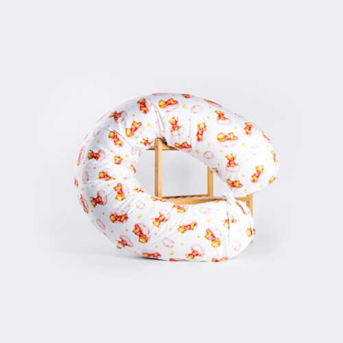 Jastuk za dojenje i spavanje 170 cm s pamučnom navlakom - Uspavani medo - rozi