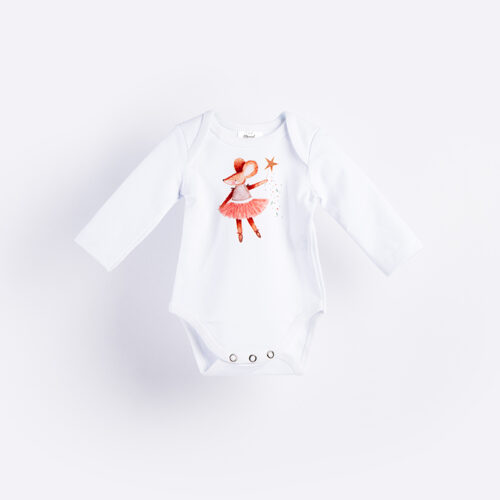 Body za bebe dugih rukava, s okruglim vratnim izrezom, kopčanjem u donjem dijelu pomoću drukera (u području međunožja, ispod pelene) i zabavnim printom s prednje strane. Body je izuzetno nježan, mekan, lagan i idealan je za zimsko vrijeme. Izrađen je od interlok pletiva (sastava 100% organski pamuk). Može se nositi samostalno ili ispod kompletića/haljinice za posebne prilike kako bi utoplio Vaše dijete. Body je izrađen od materijala sa najfinijim vlaknima, te svi materijali posjeduju certifikat Oeko-Tex® Standard 100. Boje koje koristimo za print na bodijima također posjeduju certifikat Oeko-Tex® Standard 100. Print na bodiju ulazi u samo tkanje i zbog toga nema nikakve razlike na opip između nježnog materijala i printa, te je zbog visoke kvalitete printa moguće pranje na višim temperaturama u perilici rublja i sušenje u sušilici.