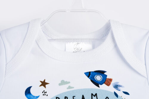 Body za bebe dugih rukava, s okruglim vratnim izrezom, kopčanjem u donjem dijelu pomoću drukera (u području međunožja, ispod pelene) i zabavnim printom s prednje strane. Body je izuzetno nježan, mekan, lagan i idealan je za zimsko vrijeme. Izrađen je od interlok pletiva (sastava 100% organski pamuk). Može se nositi samostalno ili ispod kompletića/haljinice za posebne prilike kako bi utoplio Vaše dijete. Body je izrađen od materijala sa najfinijim vlaknima, te svi materijali posjeduju certifikat Oeko-Tex® Standard 100. Boje koje koristimo za print na bodijima također posjeduju certifikat Oeko-Tex® Standard 100. Print na bodiju ulazi u samo tkanje i zbog toga nema nikakve razlike na opip između nježnog materijala i printa, te je zbog visoke kvalitete printa moguće pranje na višim temperaturama u perilici rublja i sušenje u sušilici.