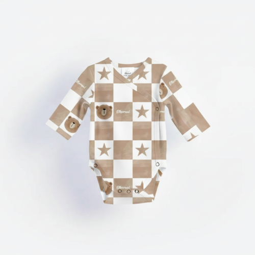 Body za bebe kratkih rukava, s okruglim vratnim izrezom, kopčanjem u donjem dijelu pomoću drukera (u području međunožja, ispod pelene). Body je izuzetno nježan, mekan, lagan i idealan je za ljetno vrijeme. Izrađen je od pamučnog jersey-a, u dezenu kao na slici. Može se nositi samostalno ili ispod kompletića/haljinice za posebne prilike kako bi utoplio Vaše dijete. Body je izrađen od materijala sa najfinijim vlaknima, te svi materijali posjeduju certifikat Oeko-Tex® Standard 100.