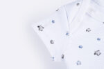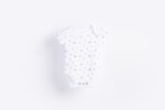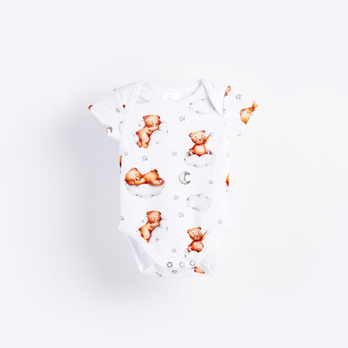 Body za bebe kratkih rukava, s okruglim vratnim izrezom, kopčanjem u donjem dijelu pomoću drukera (u području međunožja, ispod pelene). Body je izuzetno nježan, mekan, lagan i idealan je za ljetno vrijeme. Izrađen je od pamučnog jersey-a, u dezenu kao na slici. Može se nositi samostalno ili ispod kompletića/haljinice za posebne prilike kako bi utoplio Vaše dijete. Body je izrađen od materijala sa najfinijim vlaknima, te svi materijali posjeduju certifikat Oeko-Tex® Standard 100.