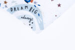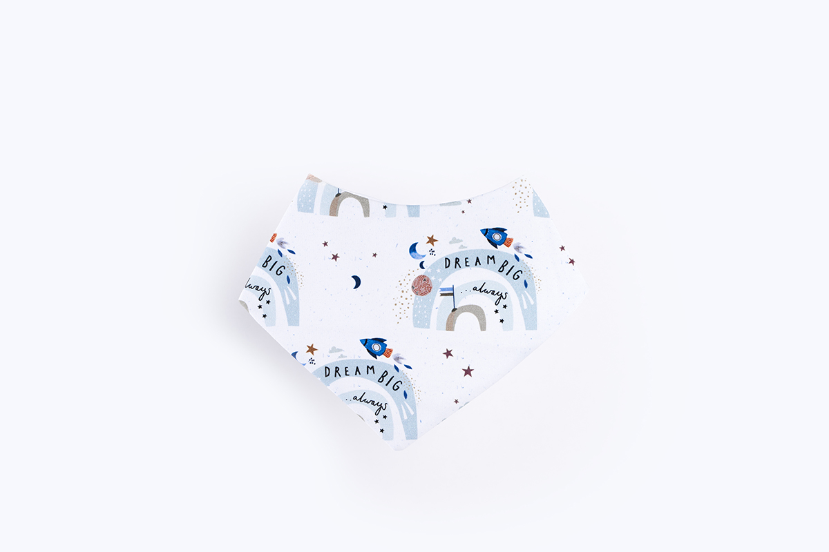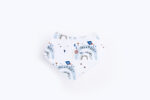 Izrađen od pamučnog jersey pletiva, ovaj podbradak nudi nježan dodir i udobnost na koju se beba može osloniti. Oblikovan u obliku marame, ovaj podbradak pruža dodatan šarm i stil djetetovoj odjeći. Podbradak ima dimenzije cca 24x18cm, što je dovoljno veliko da pokrije područje oko djetetova vrata i prsa. Ovaj podbradak je praktična zaštita od mrlja tijekom hranjenja ili drugih aktivnosti. Lako se stavlja i skida te se može koristiti više puta. Pamučni jersey materijal je lako periv i jednostavan za održavanje, čime se olakšava higijena.