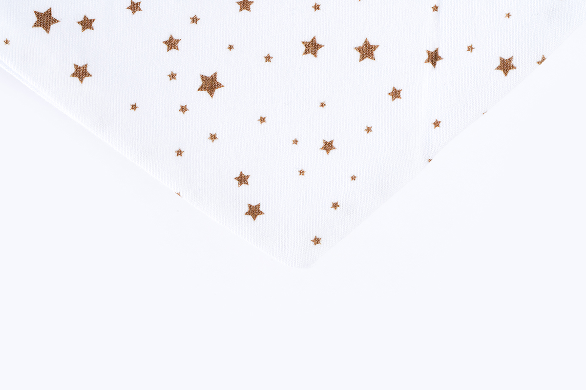 Izrađen od pamučnog jersey pletiva, ovaj podbradak nudi nježan dodir i udobnost na koju se beba može osloniti. Oblikovan u obliku marame, ovaj podbradak pruža dodatan šarm i stil djetetovoj odjeći. Podbradak ima dimenzije cca 24x18cm, što je dovoljno veliko da pokrije područje oko djetetova vrata i prsa. Ovaj podbradak je praktična zaštita od mrlja tijekom hranjenja ili drugih aktivnosti. Lako se stavlja i skida te se može koristiti više puta. Pamučni jersey materijal je lako periv i jednostavan za održavanje, čime se olakšava higijena.