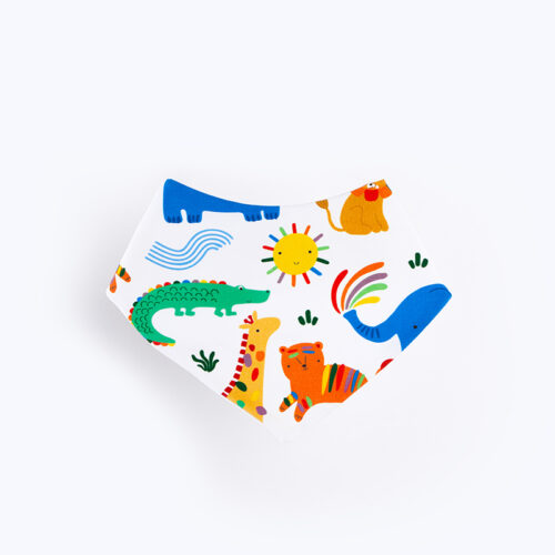Podbradak u obliku marame je šarmantan i praktičan dodatak koji štiti djetetovu odjeću od mrlja tijekom hranjenja i drugih aktivnosti. Izrađen od dva sloja pamučnog jersey pletiva, ovaj podbradak kombinira udobnost s funkcionalnošću, pružajući zaštitu i stil u jednom.