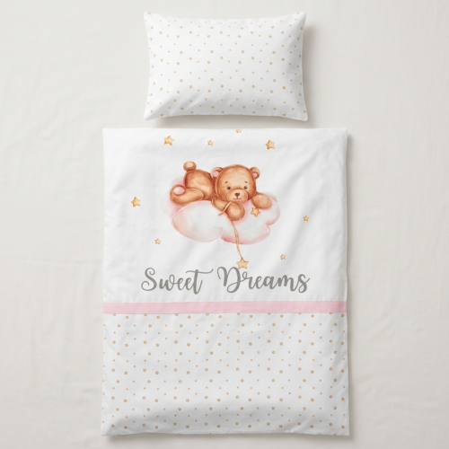 Set posteljine 60x120cm - 2-dijelni - Uspavani medo - rozi