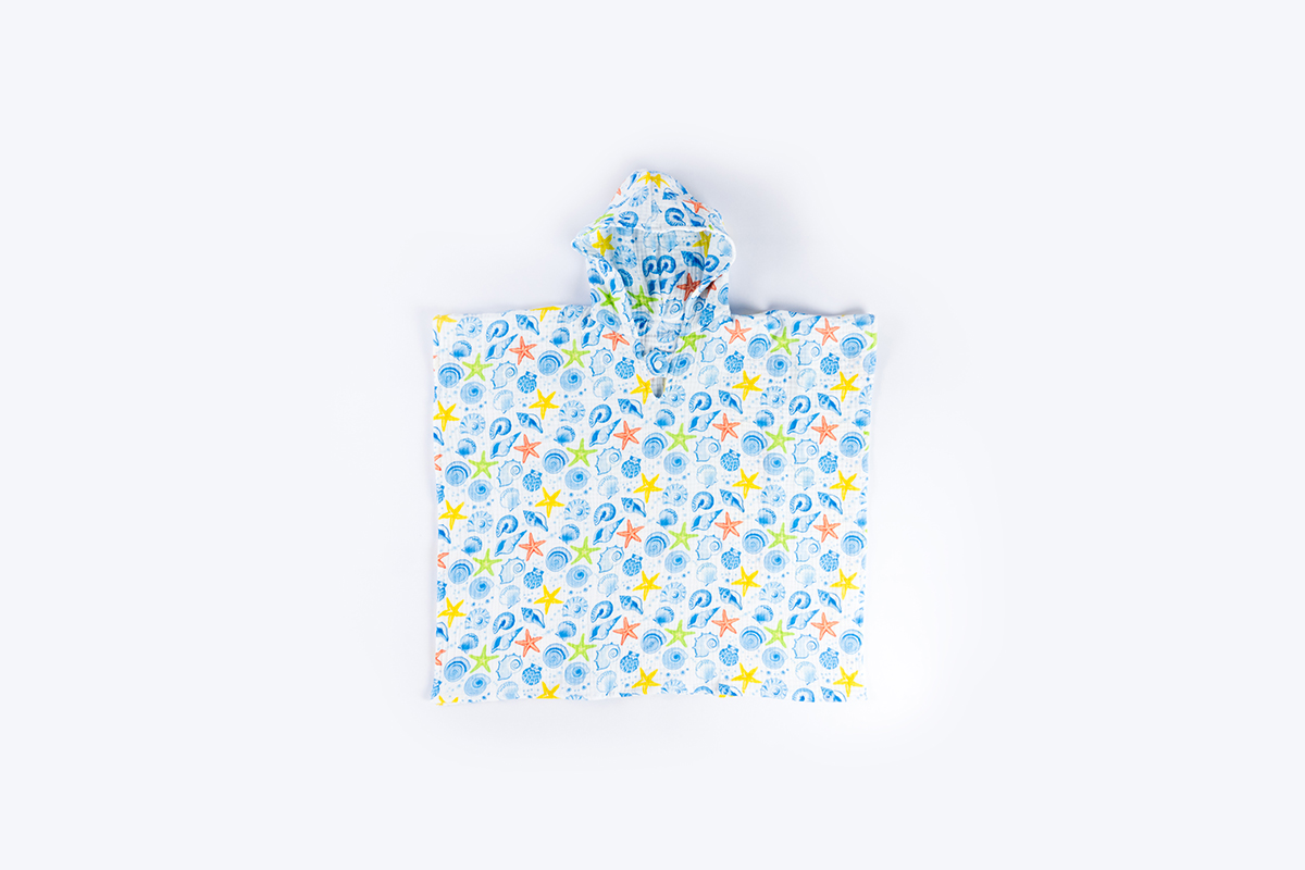Dječji pončo predstavlja brzo i jednostavno rješenje za sušenje mališana nakon kupanja. Pončo je izuzetno mekan, lagan i ima veliku sposobnost upijanja vlage te predstavlja funkcionalno rješenje za sušenje djece nakon kupanja. Izrađen je od muslina (100% organski pamuk), a može se koristiti nakon kupanja kod kuće ili prilikom posjete bazenima ili na plaži.