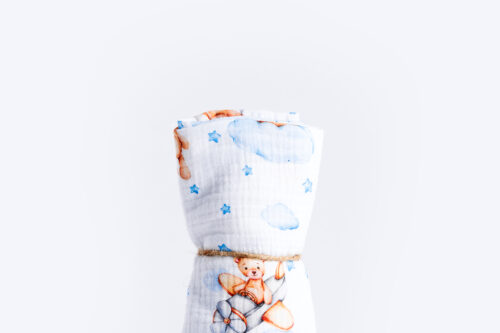 Ethereal.hr » Shop » Dječja tetra pelena muslin premium 65x65cm – Uspavani medo – plavi