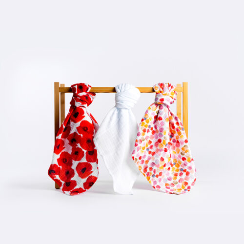 Set dječjih tetra pelena muslin premium 65x65cm u poklon kutiji - Set 3/1 - Makovi i točkice