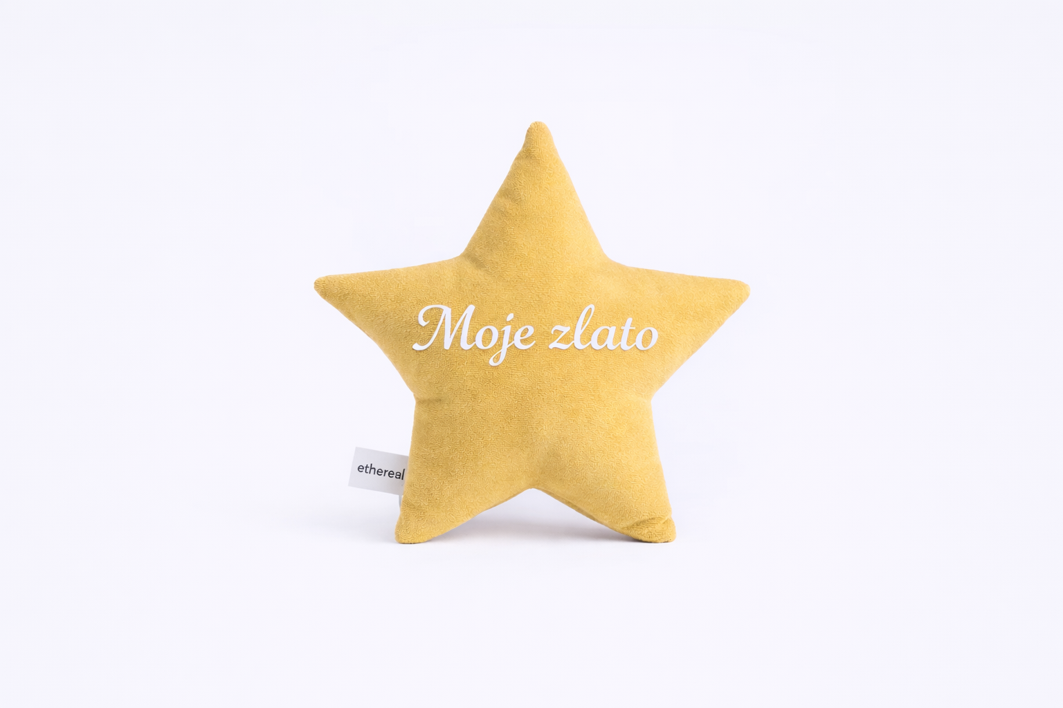 Ethereal.hr » Shop » Pamučni velur ukrasni jastučić zvjezdica – Moje zlato – senf žuta