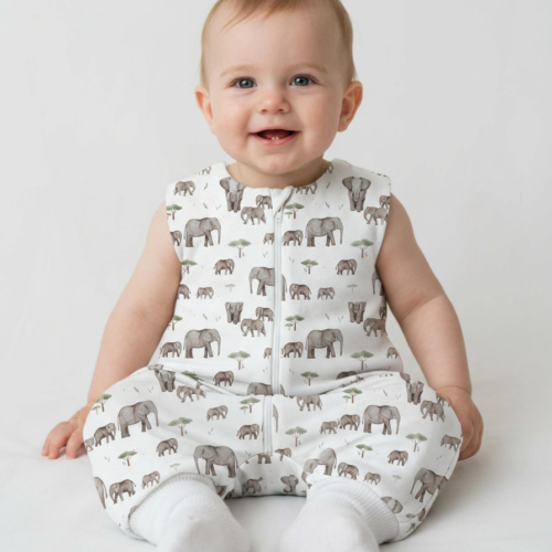 Ljetna vreća za spavanje sa rukavima i nogavicama izrađena je iz 2 sloja, vanjski dio je jersey (95% pamuk, 5% elastan), a unutarnji sloj je jersey bambus koji je prikladan i za najosjetljiviju kožu.  Vreća se zatvara uz pomoć zatvarača koji se nalazi na prednjem dijelu na sredini vreće, i proteže se od sredine vratnog izreza i seže sve do linije sjedišta/bokova. Možete birati opciju da rukavi budu fiksni ili skidivi (na patent zatvarač). Vreća ima i 2u1 nogavice koje su produljive i mogu se koristiti kao čarapice.