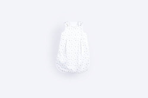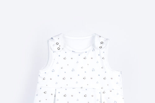 Vreća je izrađena iz dva sloja, vanjski dio je od popelina (100% pamuk), kojim je osigurana prozračnost, a unutarnji dio je interlok pletivo (100% organski pamuk) koji je zbog svog sastava prikladan i za najosjetljiviju kožu. Vreća je klasičnog kroja, stopala dolaze unutar vreće. Vreća se kopča na drukere na ramenima te ima zatvarač koji se proteže s jedne bočne strane preko donjeg dijela na drugu bočnu stranu, a njegova posebnost je u tome što ima dva ključa, može se otvoriti na donjem dijelu za promjenu pelene ili kako bi bebina stopala ostala slobodna.