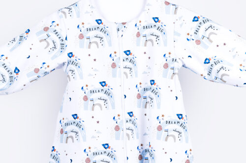 Ova udobna, topla i mekana zimska vreća za spavanje izrađena je iz dva sloja pamučne felpe (oba su sastava 95% pamuk, 5% elastan). Vreća ima duge rukave, no može se napraviti i u opciji da su rukavi skidivi (na patent zatvarač) ili mogu biti fiksni. Vreća se zatvara uz pomoć zatvarača koji se nalazi na prednjem dijelu na sredini vreće, i proteže se od sredine vratnog izreza i seže sve do linije sjedišta/bokova. Vreća ima 2u1 nogavice koje su produljive i mogu se koristiti kao čarapice.